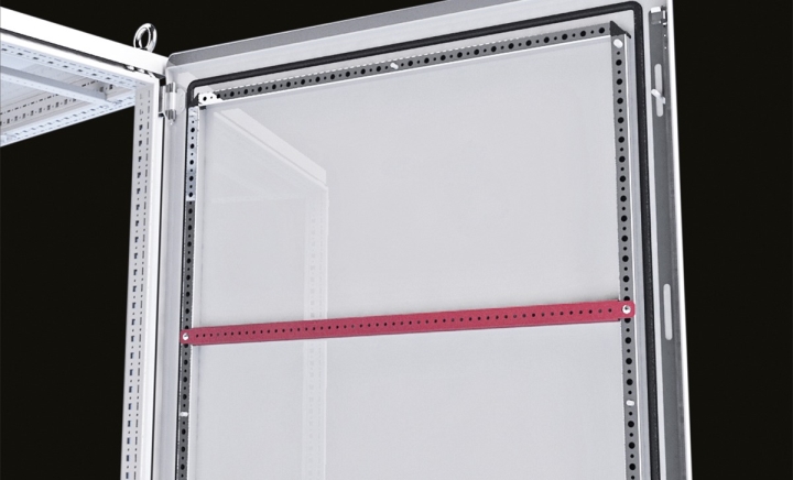 Mounted on door support profiles inside the enclosure door. Used for cable routing or mounting small devices. Compliant with IEC 62208 standards.
