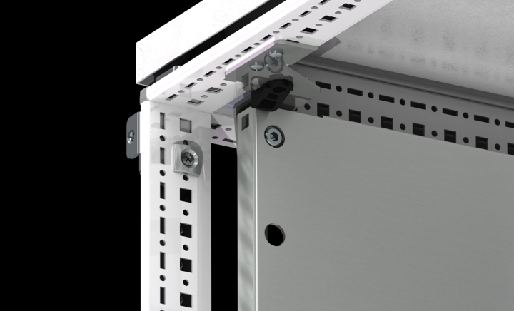 Can slide forward and backward using a pin-and-slot system without additional parts. Can be used with double mounting plates in the middle (front-back). Short mounting plates can be attached using 50x25mm perforated rails. Compliant with IEC 62208 and UL508A standards.
