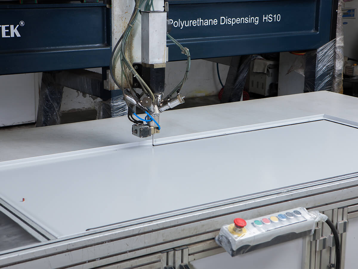 All DKP and galvanized parts to be painted are first subjected to a cleaning process. Pressurized spray removes oils, and ionization is applied for passivation. Cleaning at +55°C ensures even the most difficult-to-reach areas are treated and phosphate coating is applied. After cleaning and phosphating, excess moisture is removed (drying stage). Parts then enter the paint booth and are coated using robotic electrostatic application. The robot system ensures uniform paint thickness, giving a smooth finish. Painted parts are then baked in the oven at 200°C for 15 minutes. This fully automated, single-line system ensures all parts move along the same axis without human contact, producing a consistent, error-free painting process. After this process, parts achieve 750-hour salt spray resistance.