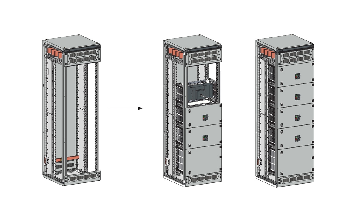 - Üstten Ana bara bağlantılı, Sabit Tip Çıkış kastelerini montaj amaçlı (1600A'e kadar)